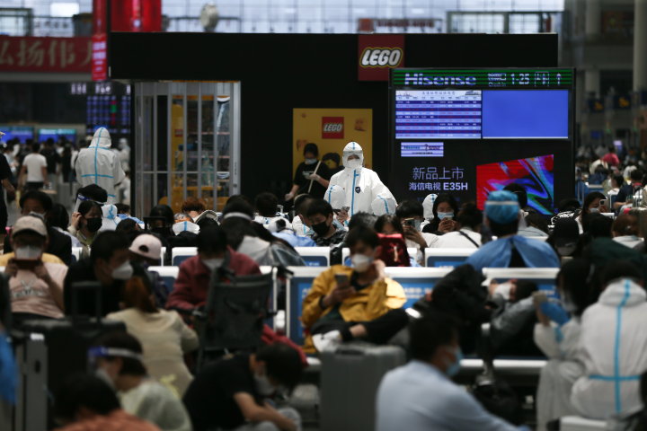 5月22日,上海虹橋火車站內有不少乘客在候車。新華社記者 丁汀 攝