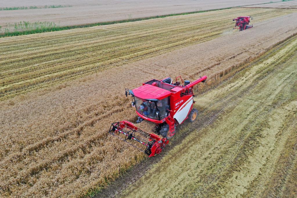 位于安徽省宿松縣的華陽河農場機收小麥現場。新華社發 李龍 攝