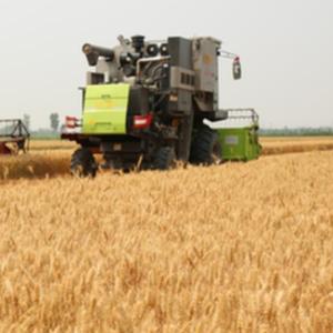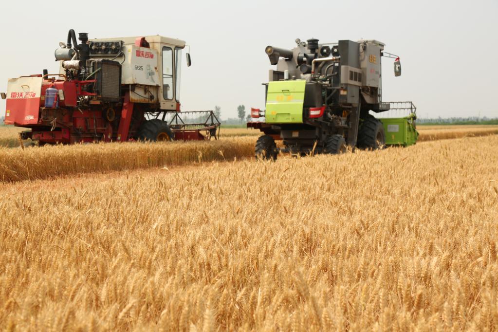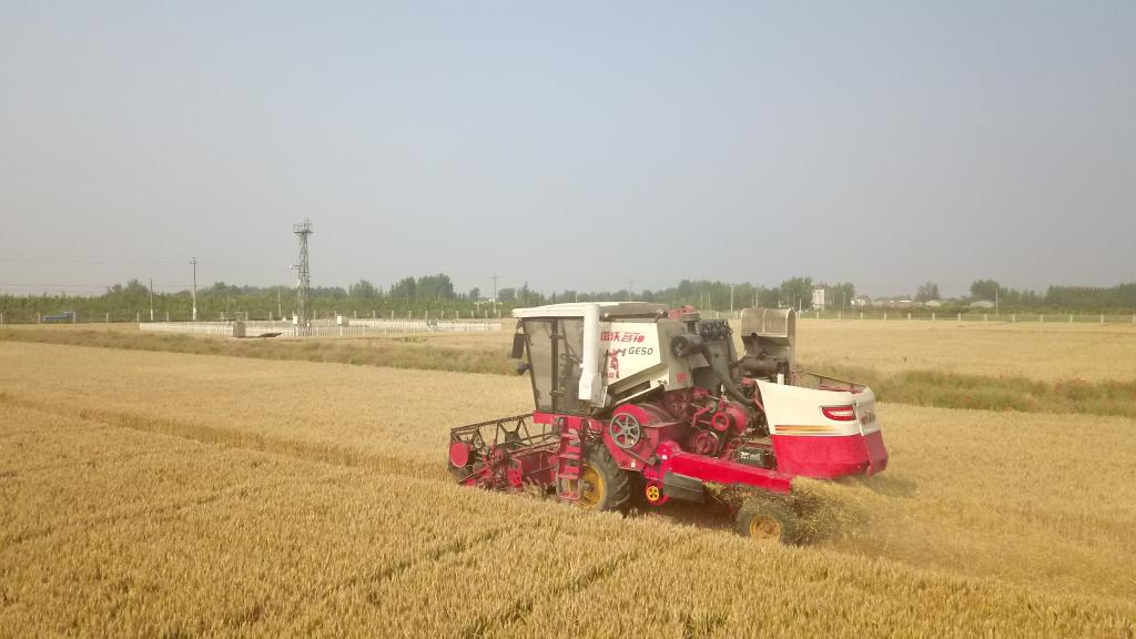 圖為在南皮縣,收割機正在收割小麥。(受訪者供圖)