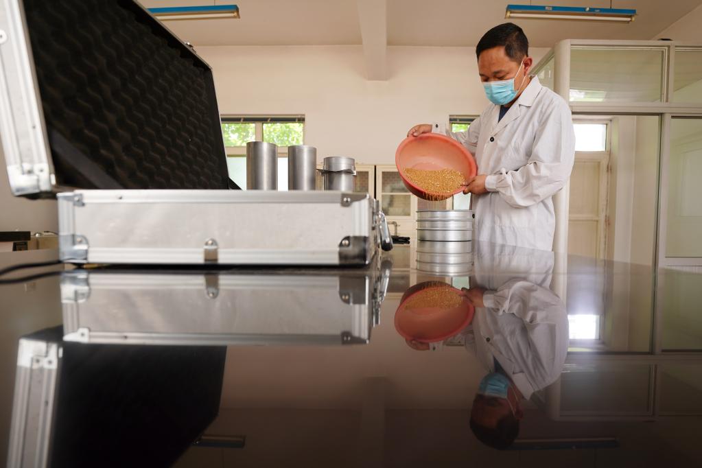 河北柏糧糧食儲備有限公司質檢員在檢驗小麥質量。(受訪單位供圖)