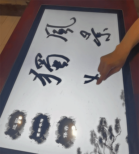 江西會昌文武壩村“風景獨好園”中,游客通過互動體驗裝置書寫“風景獨好”四字。 新華社記者 賈伊寧 攝制
