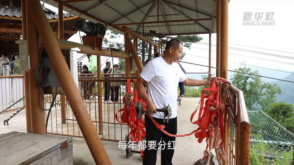 土地入股景區后,周云也在景區從事滑索操作。隨著景區影響力不斷提升,再加上自己踏實肯干,幾年下來,周云分紅的收入高了,還升了職。