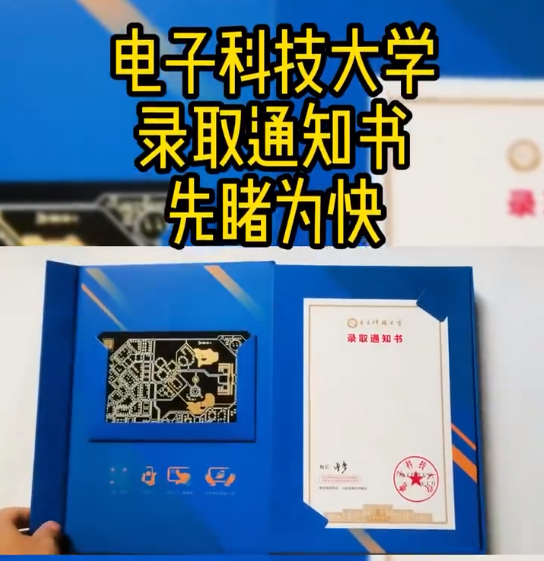 近日,電子科技大學2022年錄取通知書發出。黑金色的電路板上,電阻和導線勾勒出校園的模樣;掃描電路板能看到3D校園圖景,還有AR游戲可以玩。通知書中鑲嵌著一顆尚未打磨的硅顆粒,意味著“每一粒嶙峋的硅都蘊藏著生命的質變,在經過時間的沉淀與打磨后,成為浩渺宇宙中的一顆星球”。網友看了不禁感嘆:好看好玩又有意義!