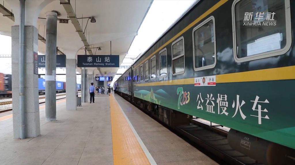 在山東省唯一的一趟公益性“慢火車”7053次列車上,經過工作人員的精心布置,火車車廂搖身變為一個多彩的“移動課堂”。
