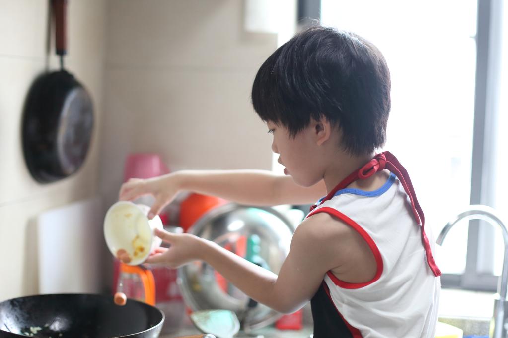 “今天,我在媽媽的幫助下第一次做蛋炒飯,味道太好啦!原來做飯也是一件非常需要專注和耐心的事情呢?!蓖瓿伞皬N房首秀”的杭州市長壽橋小學二年級學生周鋅懿說。