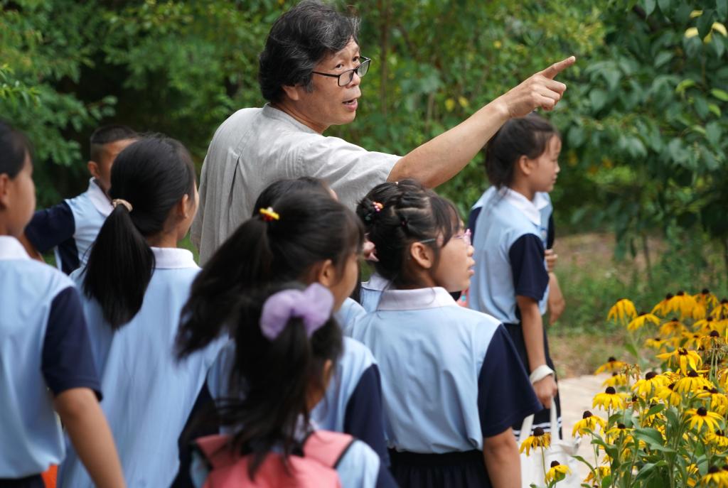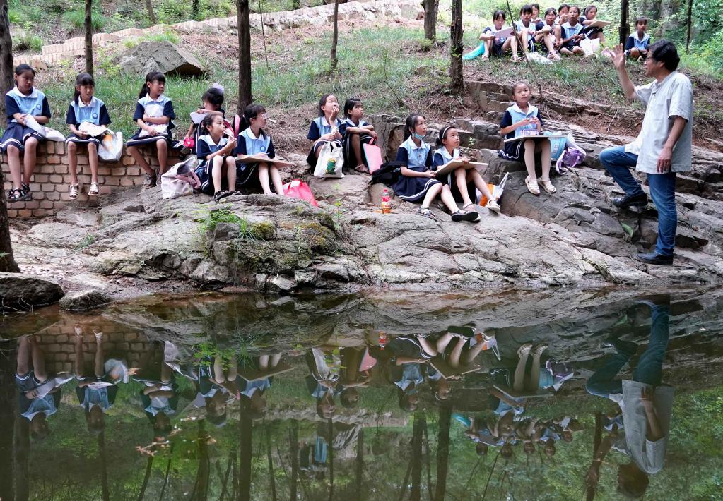 夏日的午后,山谷的靜謐被一群孩子打破。十來個八九歲的孩子,背著畫板,三三兩兩跳躍在山間的石磚路上,郭愛和走在他們中間。