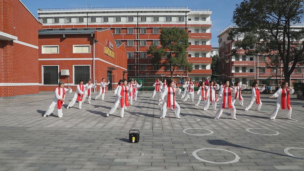 湖南省長沙市望城區高塘嶺街道中南社區居民在活動廣場上打太極拳。(受訪者供圖)
