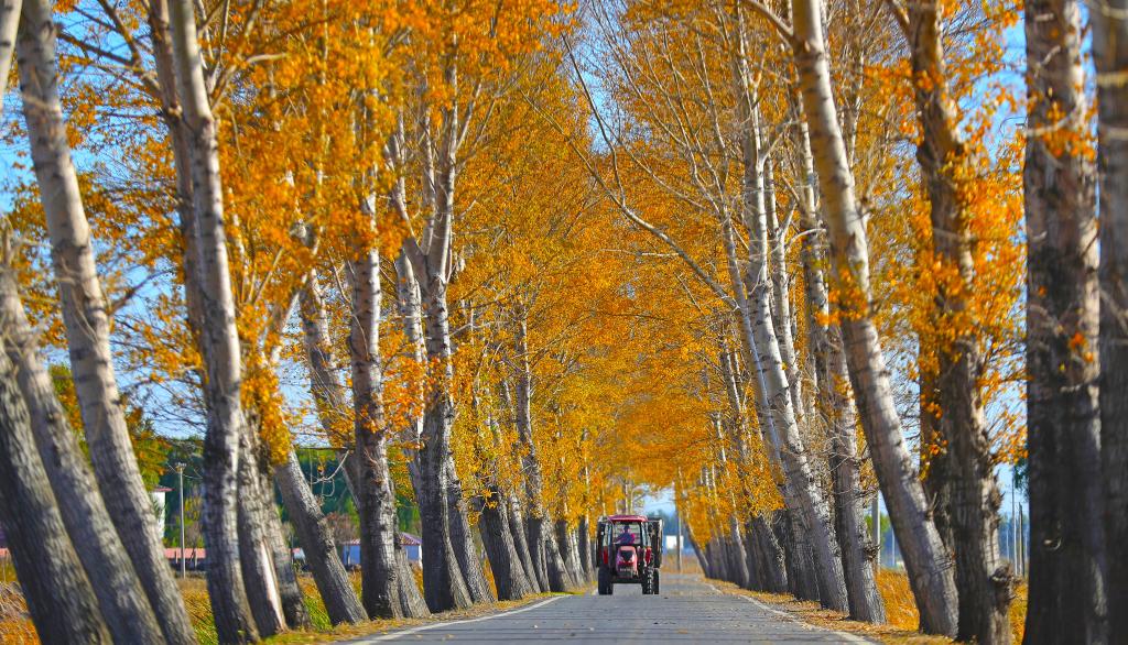 10月18日,在遼寧沈陽市沈北新區興隆臺鎮青年農場,車輛在運送剛收割的水稻。 新華社記者 楊青 攝