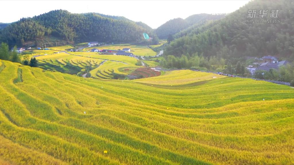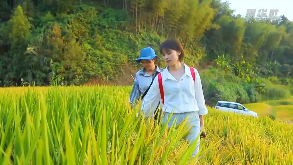 金秋十月,江西崇義縣的上堡梯田里,陣陣稻浪吸引了大批游客打卡拍照。