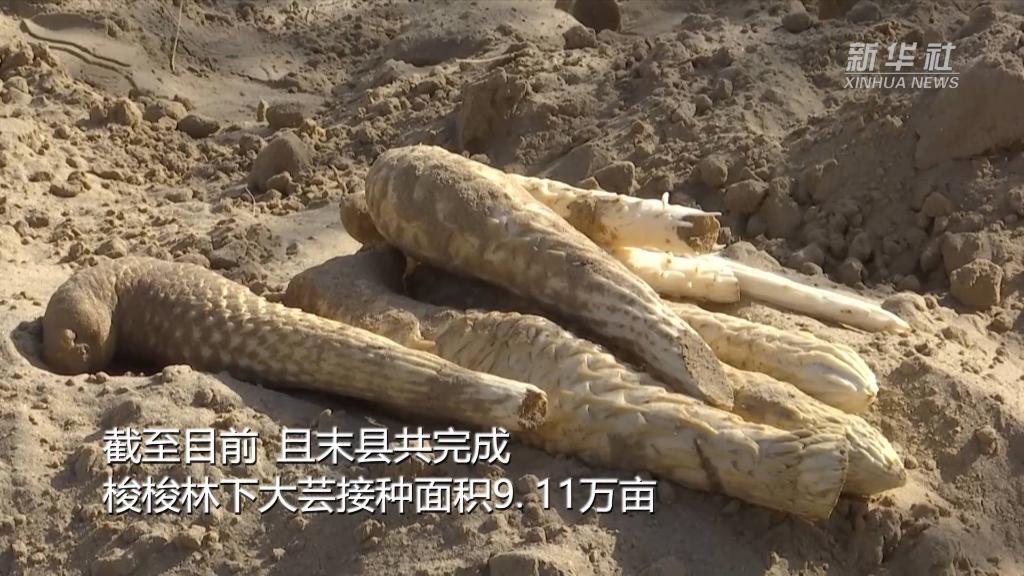 眼下正是新疆且末縣2萬多畝大蕓采收時。漫漫沙海中,一株株大蕓成為農民從黃沙中淘到的“黃金”。