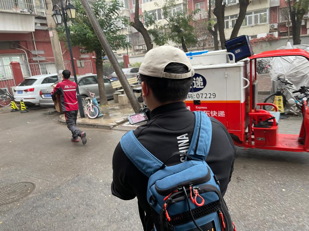 新華社北京11月11日電(記者陳旭 夏子麟)11月11日,北京迎來入冬以來首場降雨,與清冷的天氣比,快遞小哥欒玉帥忙得熱火朝天。