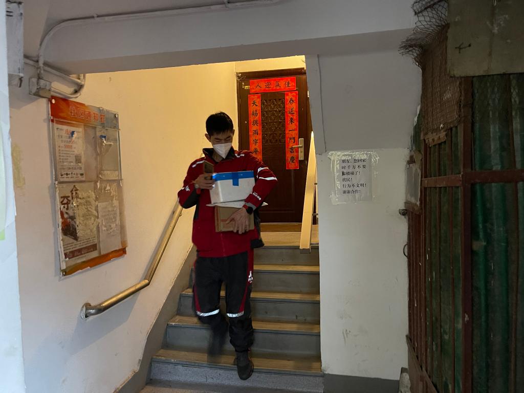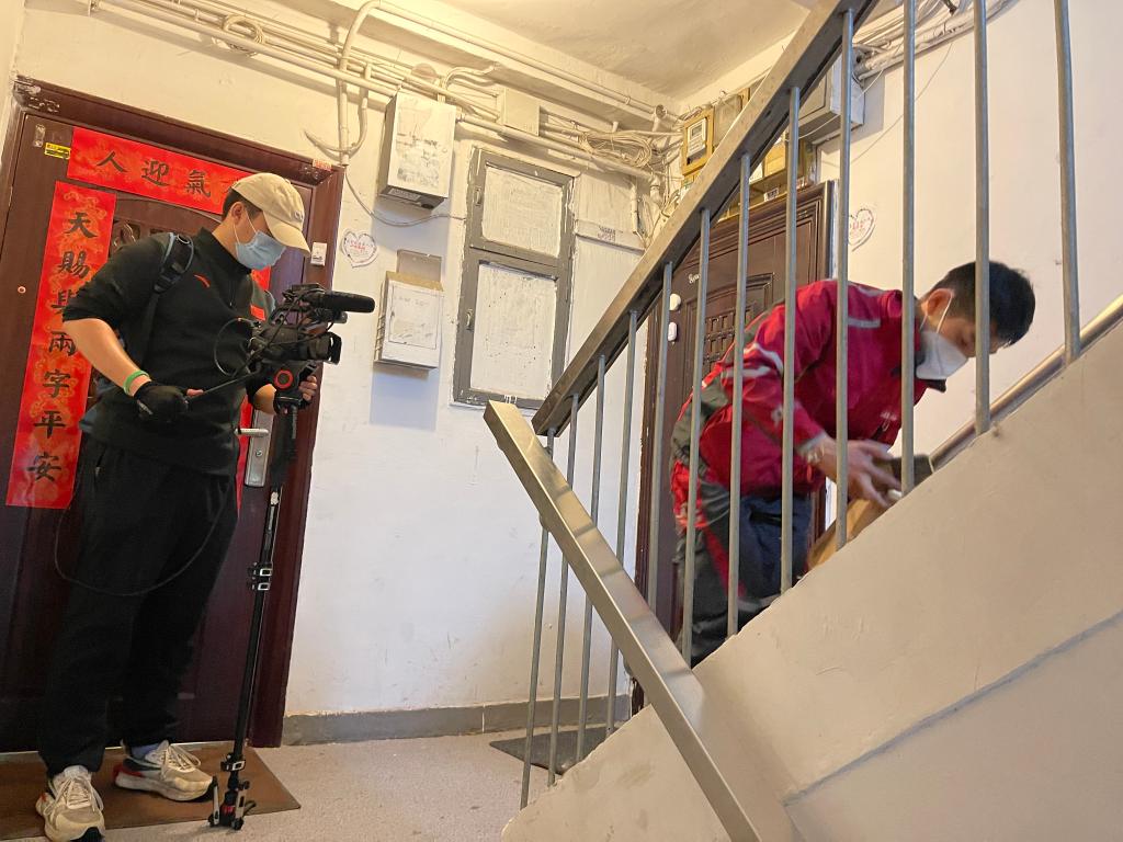 一步兩階梯,上樓如平地,這是拿著幾件小件快遞上樓的欒玉帥;一口氣上六樓,中間不停歇,這是手拿肩抗米面油的欒玉帥。追了小哥一路,被小哥甩了一路,記者正懊惱時,一位街坊的“玩笑話”讓記者印象深刻:“他在樓下按完門禁我住三樓就能開門,這時他剛好到門口?!?/p>