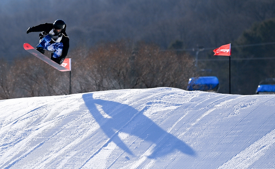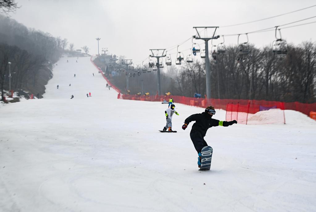 滑雪愛好者在長春市廟香山滑雪場體驗雪季“開板”快樂。