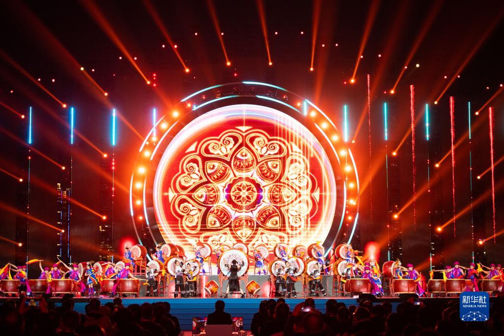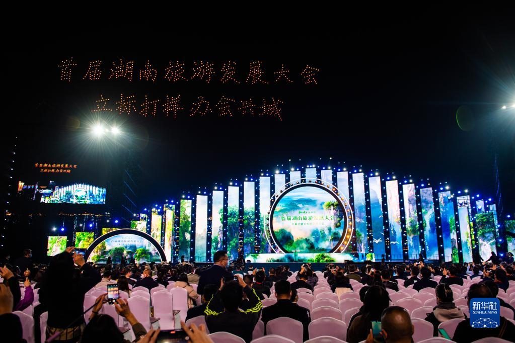 這是11月19日在張家界市民廣場拍攝的首屆湖南旅游發展大會開幕式現場。新華社記者陳思汗攝