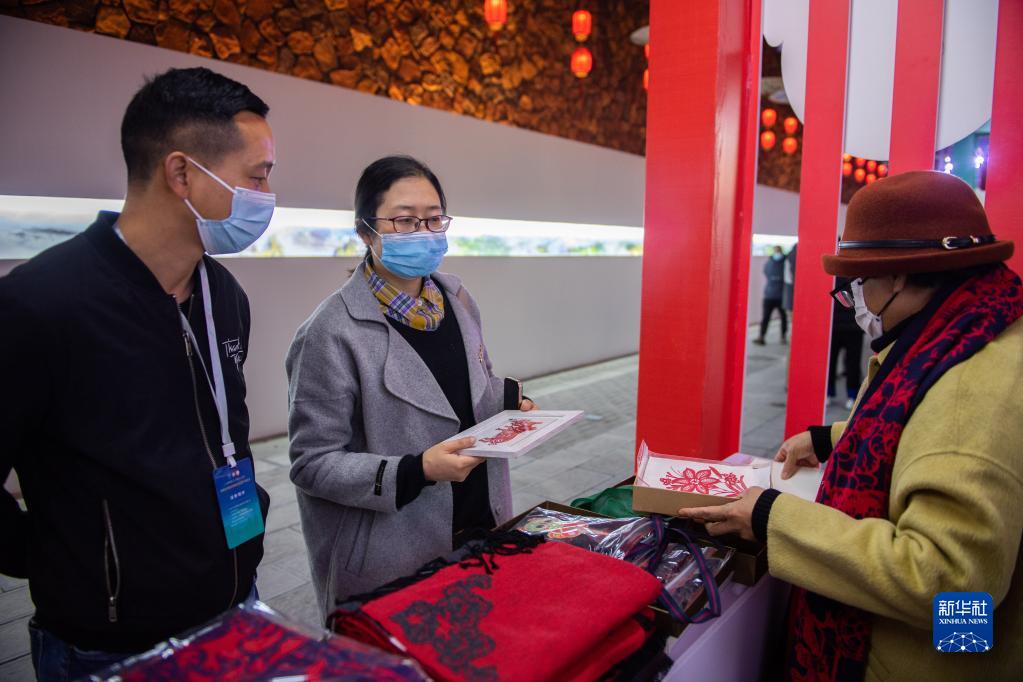 11月18日,在張家界大庸古城舉辦的湖南省首屆非遺博覽會上,市民在挑選商品。新華社記者陳思汗攝
