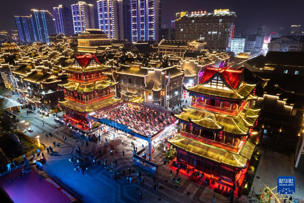 入夜后,張家界大庸古城被燈光照耀得美輪美奐。非遺藝人現場展示“絕活”、地方特色小吃飄香四溢、售賣的手工藝品精細巧妙……在本屆旅發大會配套活動湖南省首屆非遺博覽會上,夜游項目讓游客流連忘返。