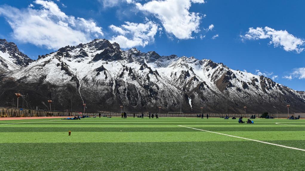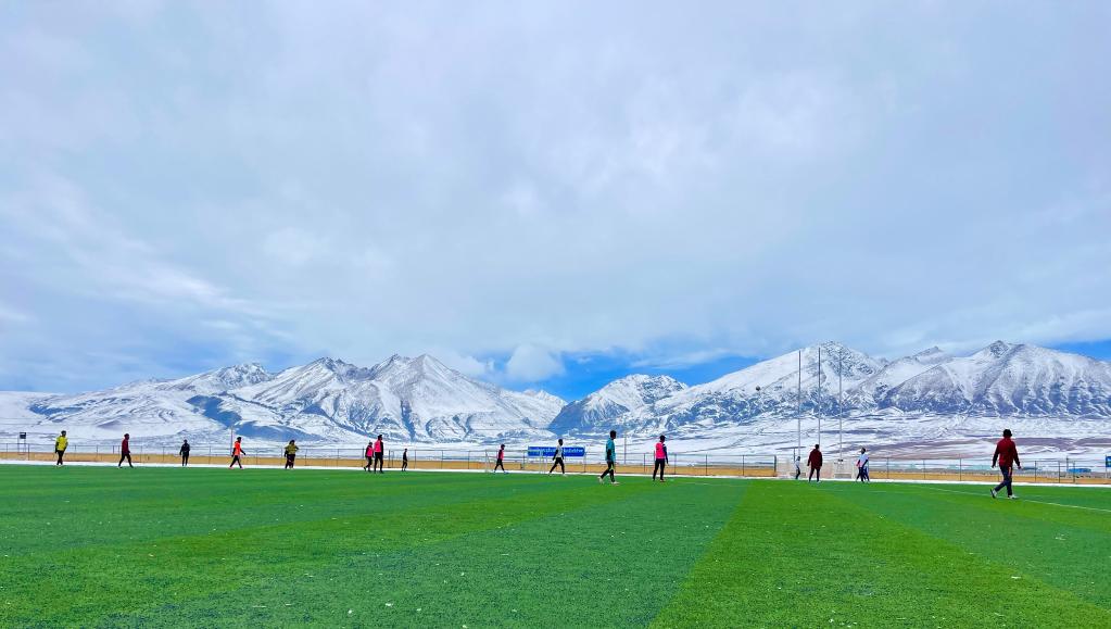 ↑這是那曲市嘉黎縣中學的足球場(3月30日攝)