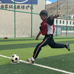 ↑當雄縣中學的學生們正在踢足球(1月5日攝)
