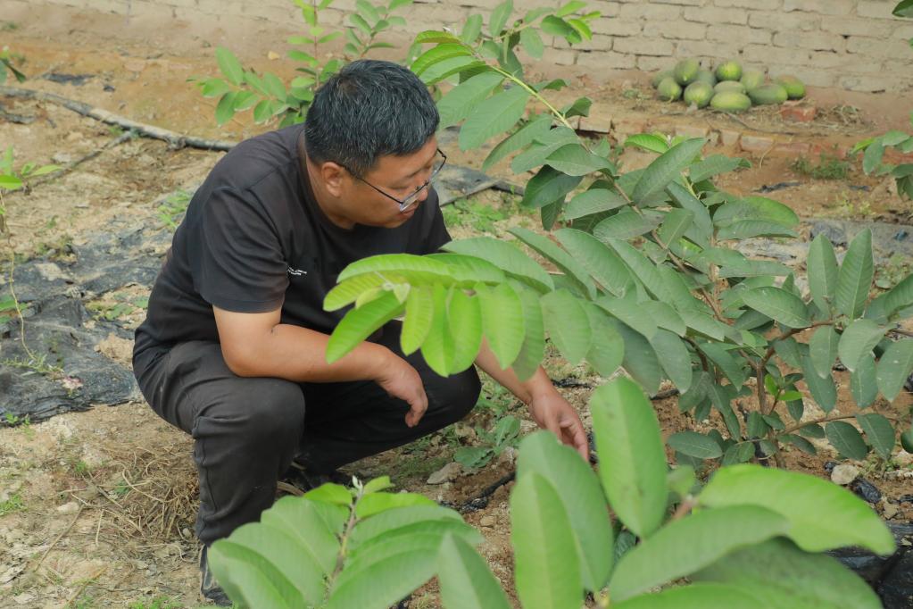 白恒瑋在為番石榴疏果,這樣可以使留下的果實更好地生長。新華社記者 王艷 攝