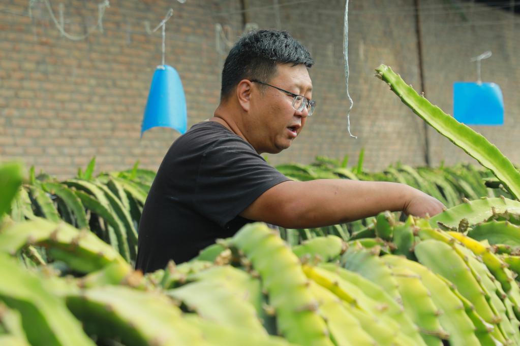 白恒瑋在為火龍果修剪枝條。新華社記者 王艷 攝