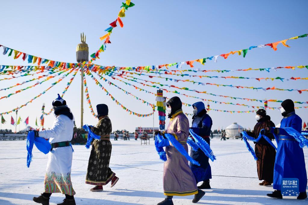 12月28日拍攝的查干湖第二十一屆冬捕節祭湖醒網儀式現場。新華社記者 許暢 攝