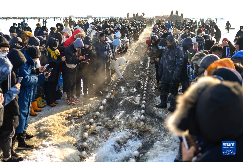 新華社長春12月28日電(記者孟含琪、黃昕欣)吉林冬捕經濟帶啟動暨查干湖第二十一屆冬捕節28日開幕,馬拉絞盤,冰湖騰魚,原始的冬捕方式吸引各地游客前來觀賞。