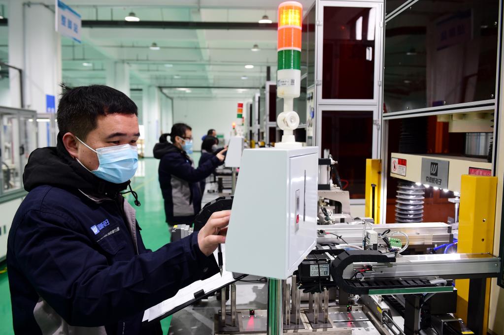 走進合肥京思威電子科技有限公司生產車間,生產線上機器轟鳴,閃爍的指示燈下,戴著口罩的員工正在操作機床。