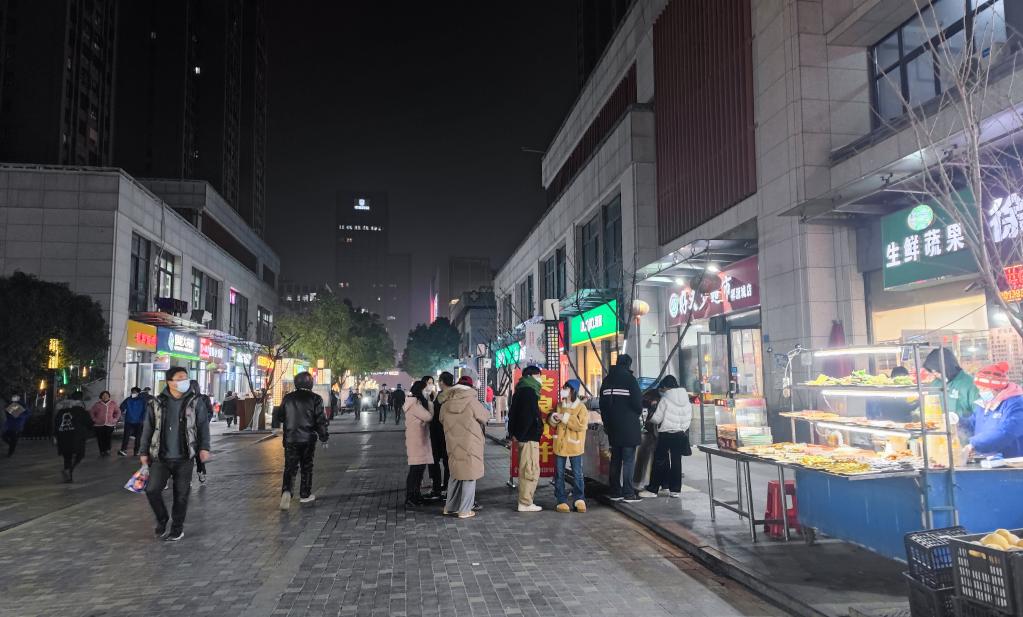 12月28日晚記者拍攝的合肥高新區的一條商業街。(新華社記者何曦悅 攝)