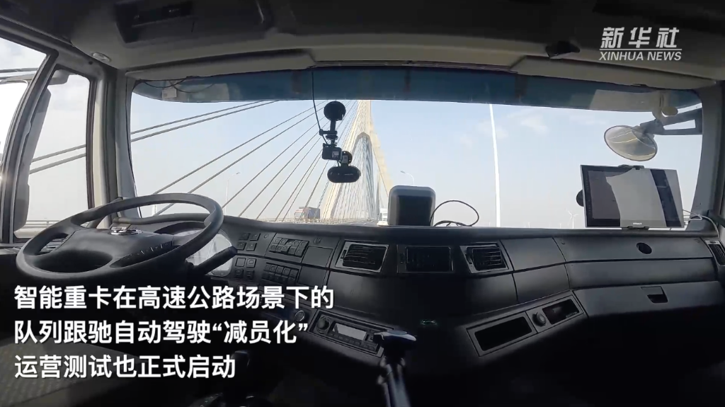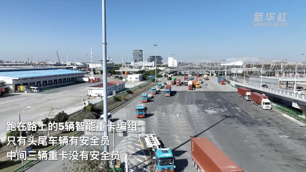 跑在路上的5輛智能重卡編組,只有頭尾車輛有安全員、中間三輛重卡沒有安全員——12月29日,備受關注的上海東海大橋智能重卡“減員化”運營測試進入“真無人”階段,這也是國內唯一的社會道路常態化“真無人”測試和運營場景。