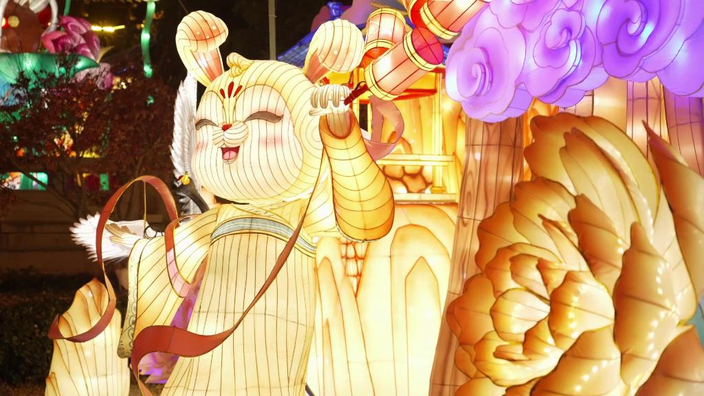 春節將至,南京秦淮河畔、明城墻下,各類造型精美、設計精巧的兔年燈彩,點亮了歲末年初的金陵夜空。