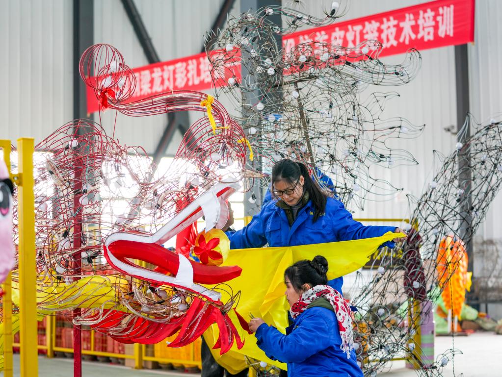 1月19日,在重慶市銅梁區太平鎮坪漆村龍燈彩扎基地的鄉村振興車間內,幾名村民正在制作銅梁龍燈。新華社記者劉潺 攝