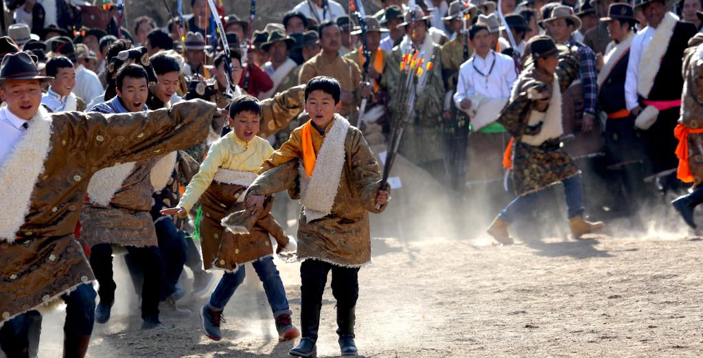 從尖藏村出發,沿山路蜿蜒向下,當汽車行駛至半山腰,黃河干流李家峽河谷盡收眼底。河谷沿岸的不少村落正在比賽傳統射箭,熱鬧的歡呼聲此起彼伏。