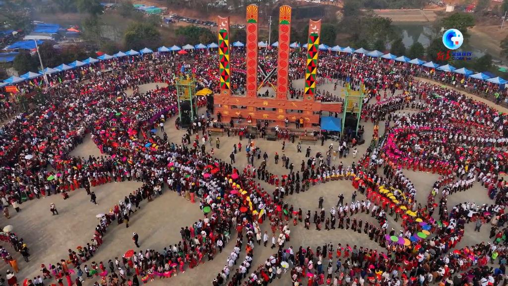 “目瑙縱歌”是景頗語里“一起跳舞”的意思。2月4日至6日,在目瑙縱歌之鄉云南隴川縣,舉行了景頗族一年一度的目瑙縱歌節。景頗族男女身著節日盛裝,從村村寨寨聚集到舉行目瑙縱歌節活動的場地,圍著景頗族的圖騰柱“目瑙示棟”縱情歌舞。每年的目瑙縱歌節除了景頗族,還有其他少數民族和來自各地的游客共同參與。立春次日,數萬人同跳一支舞,歌舞場面盛大而熱烈。