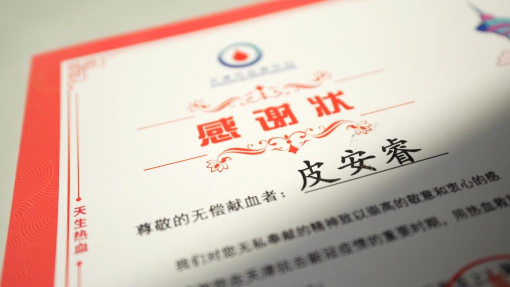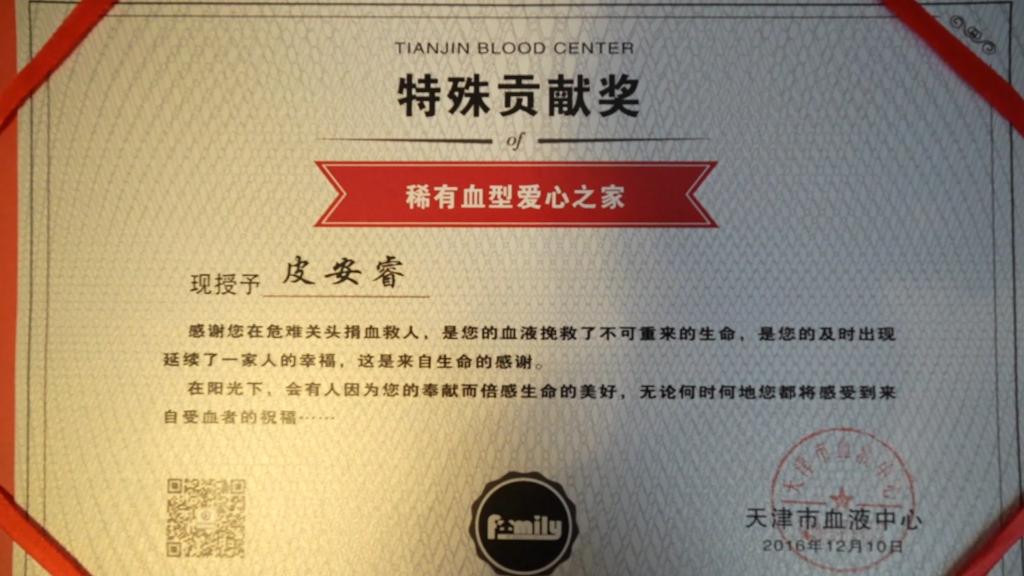 因為皮安睿是稀有的Rh陰性血型,也有人送給他一個昵稱——“熊貓俠”。今年,皮安睿獲得了中國的永久居留權,他希望與中國相伴此生,和與他“血脈相連”的中國人民幸福地生活在一起,一同實現他們的夢。