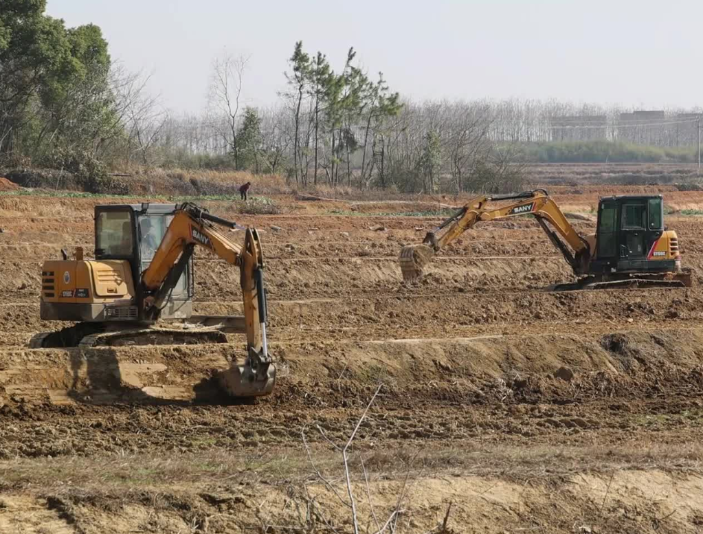 在江蘇省淮安市洪澤區三河鎮,新春伊始,高標準農田建設已經有序恢復施工,為按時完成項目夯實基礎。