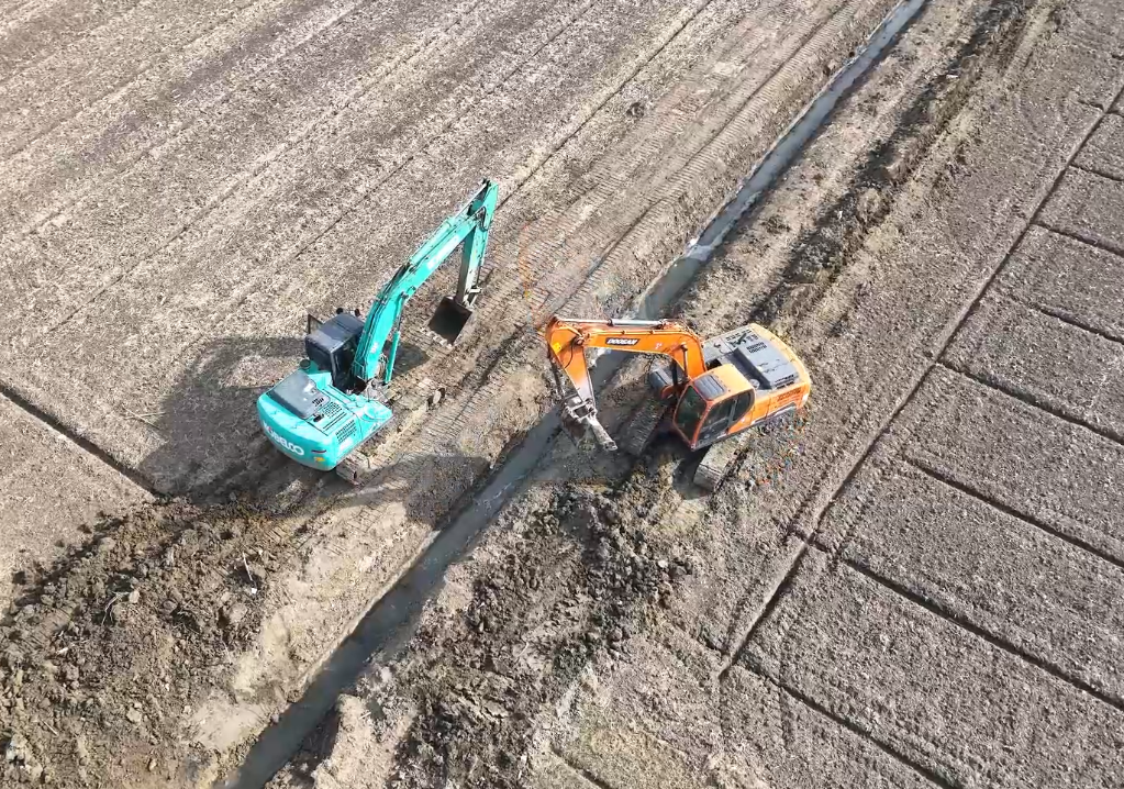 江蘇省淮安市洪澤區三河鎮高標準農田建設現場。視頻截圖