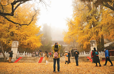 北京潭柘寺的兩株古銀杏樹,已經有一千三百年的樹齡。(圖片來源:中新網)