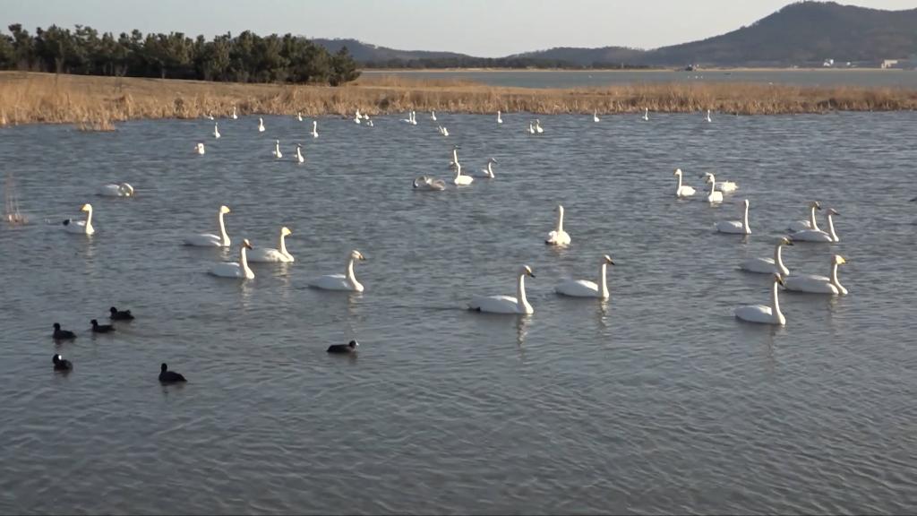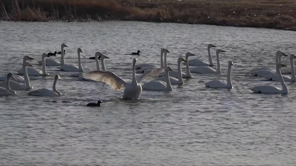 據榮成大天鵝國家級自然保護區工作人員介紹,部分大天鵝已有遷徙跡象,預計遷徙高峰期將出現在3月初。為保證大天鵝有充足體力回遷,保護區工作人員會定時為大天鵝投食。