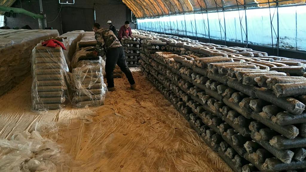 “現在還不是出菇的時候,但要倒垛。我在這兒打工,一天能掙100多元?!毙●R坊村60歲的村民魏愛成邊干活邊說。