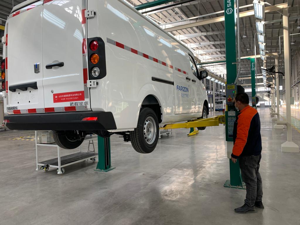 圖為山東泰安新泰市吉利遠程本途新能源商用車生產車間。新華社記者孫曉輝 攝