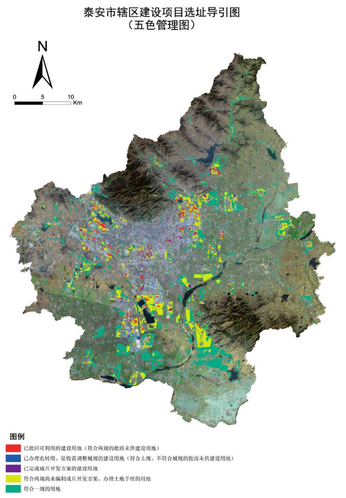 圖為泰安市今年首創的土地五色標識法,對地塊按成熟度從高到低進行“紅、藍、紫、黃、綠”五色標識,指導企業精準選址。新華社記者孫曉輝 攝