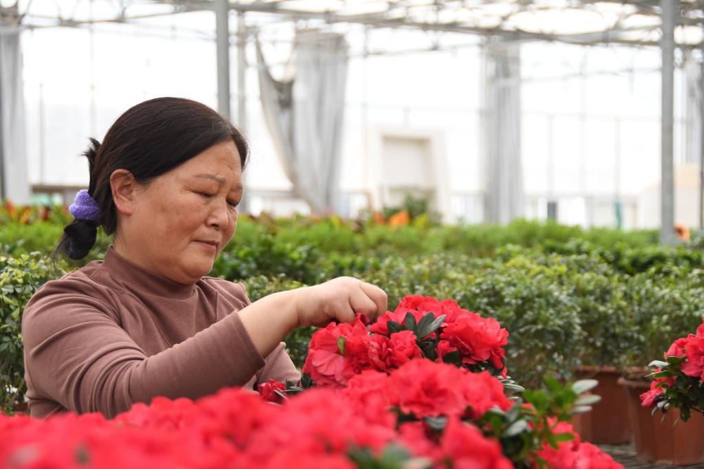 裕盛村村民正在大棚內整理花卉。新華社記者 張斌 攝