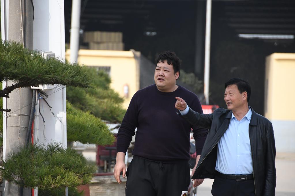 裕盛村黨支部書記王彥鵬(右)詢問苗木銷售情況。新華社記者 張斌 攝