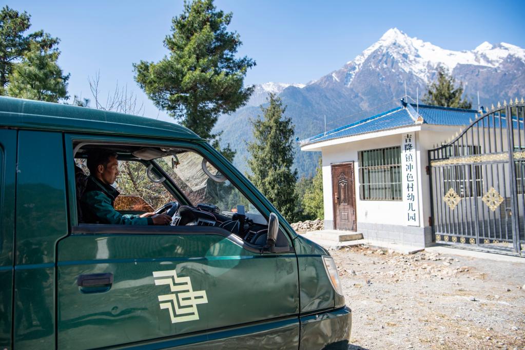 大約過了半個小時,巴桑頓珠到達第一站——沖色村幼兒園。他拿起一疊捆好的報紙,放到了收發室門口。