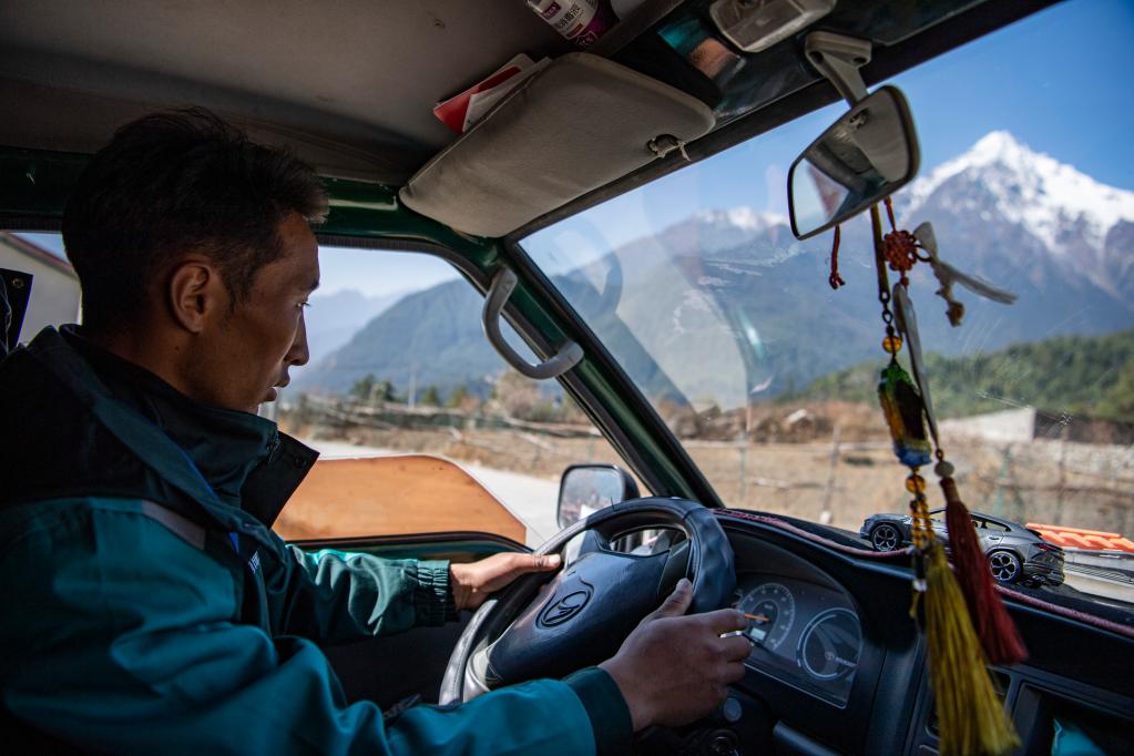 巴桑頓珠把包裹放上車,迎著喜馬拉雅山南麓的暖濕空氣,開始了一天的配送。