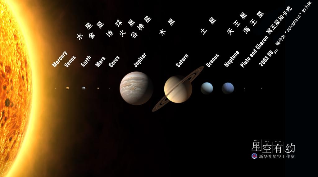 這張繪制圖片顯示了太陽系的12顆天體(含谷神星)。新華社發