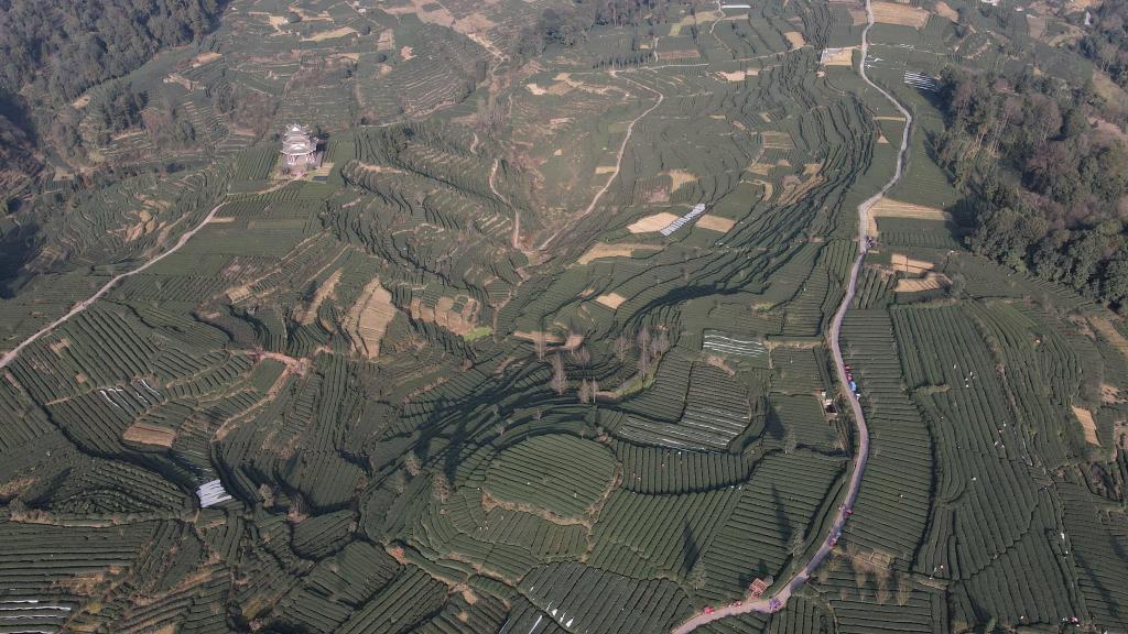這是位于雅安市名山區紅星鎮的萬畝觀光生態茶園(無人機照片)。新華社記者 胥冰潔 攝