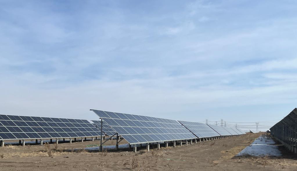 新疆準東經濟技術開發區一處光伏電站(3月8日攝)。新華社記者張玉棟 攝