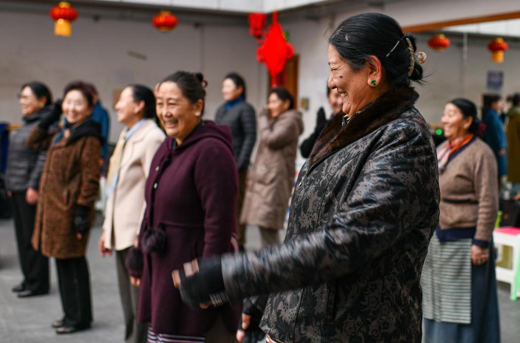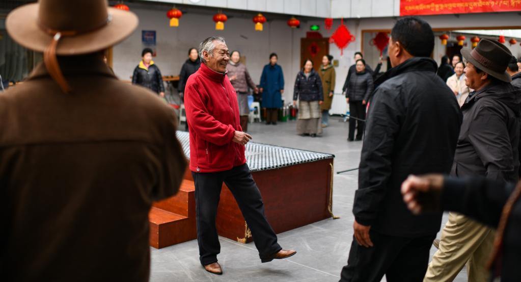 3月的拉薩氣溫雖已逐漸回暖,但早晚的寒意仍未退去。與往常一樣,一大早,西藏自治區群藝館一樓排練大廳內,悠揚的扎念琴聲、時快時慢的踢踏舞聲、男女混合的傳統藏族歌曲和歡笑聲不時傳出,為初春的古城增添了一抹暖意。