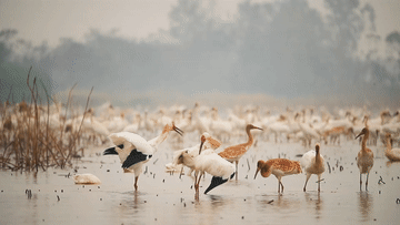 中國最大淡水湖鄱陽湖是瀕危物種白鶴的主要越冬地。每到秋冬時節,全球約98%的白鶴從俄羅斯西伯利亞飛越數千公里來到鄱陽湖越冬。